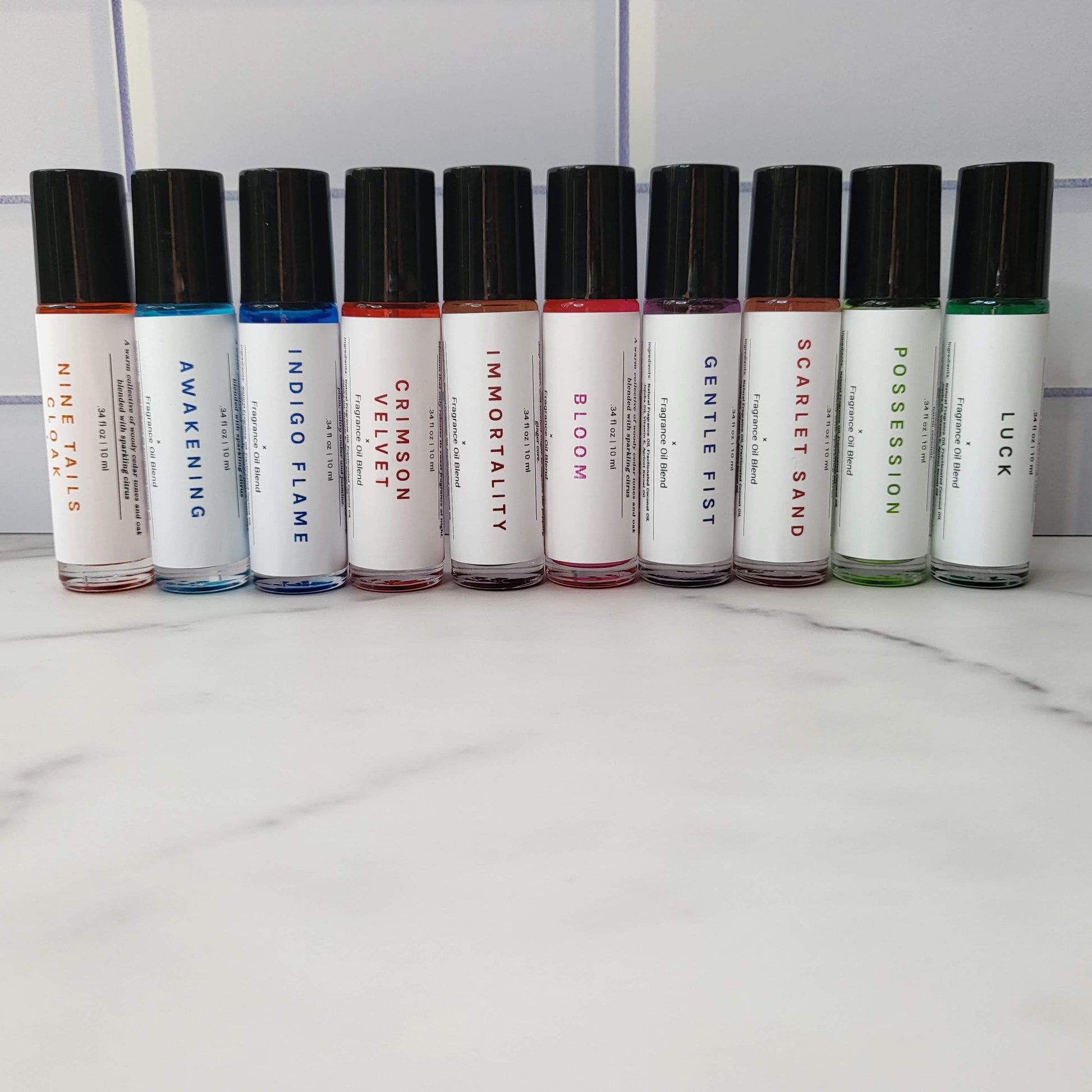 Natural Fragrance Oil, Fractionated Coconut Oil, Jojoba Oil, Vitamin E, Apricot Kernel Oil