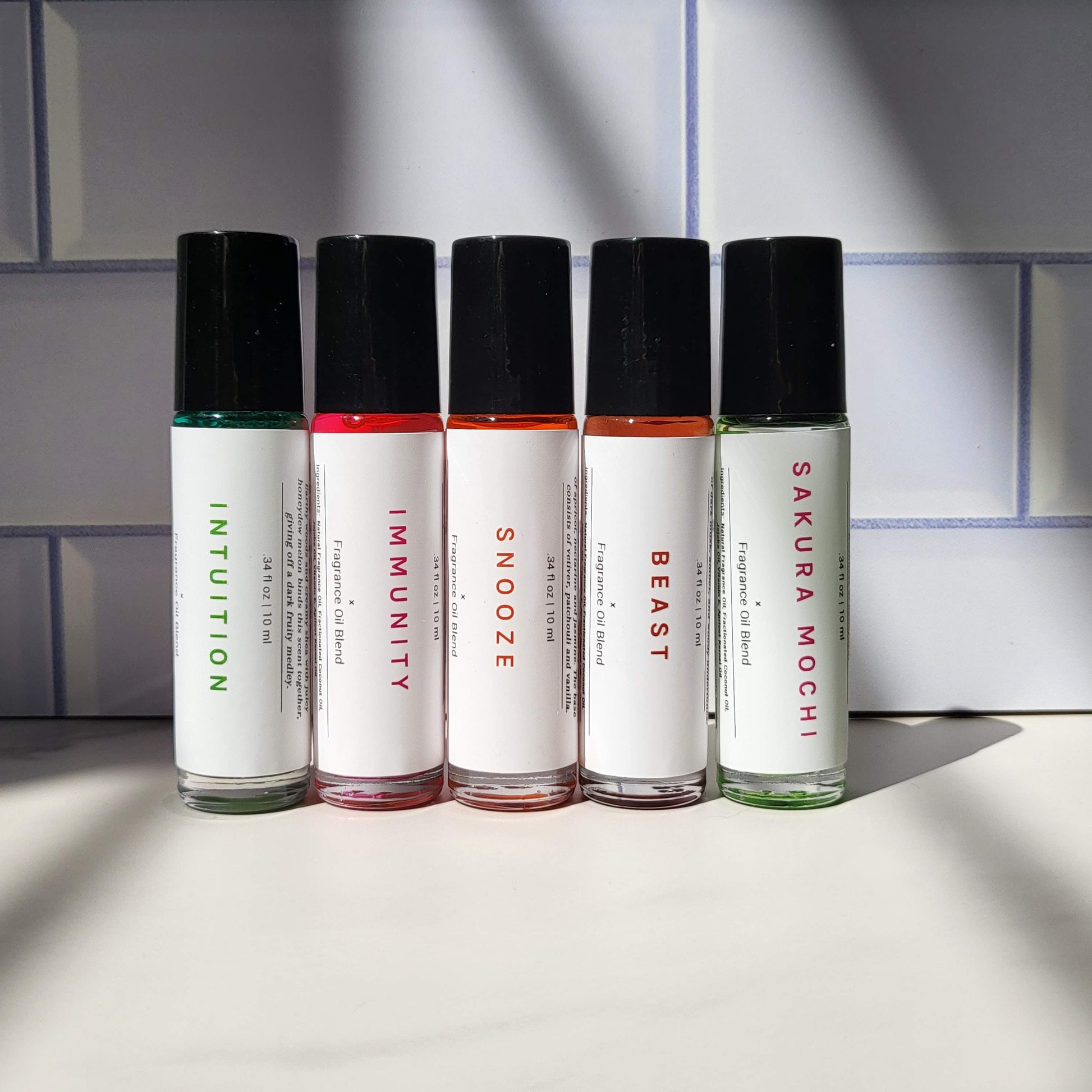Natural Fragrance Oil, Fractionated Coconut Oil, Jojoba Oil, Vitamin E, Apricot Kernel Oil