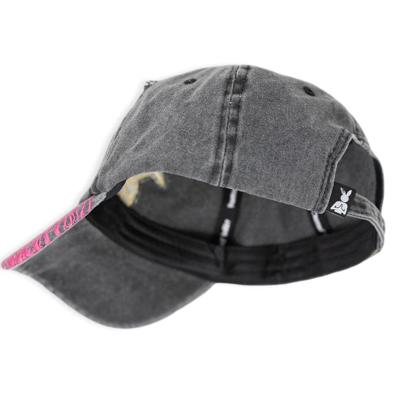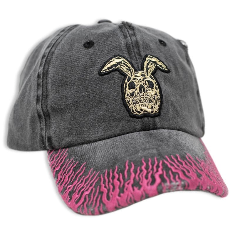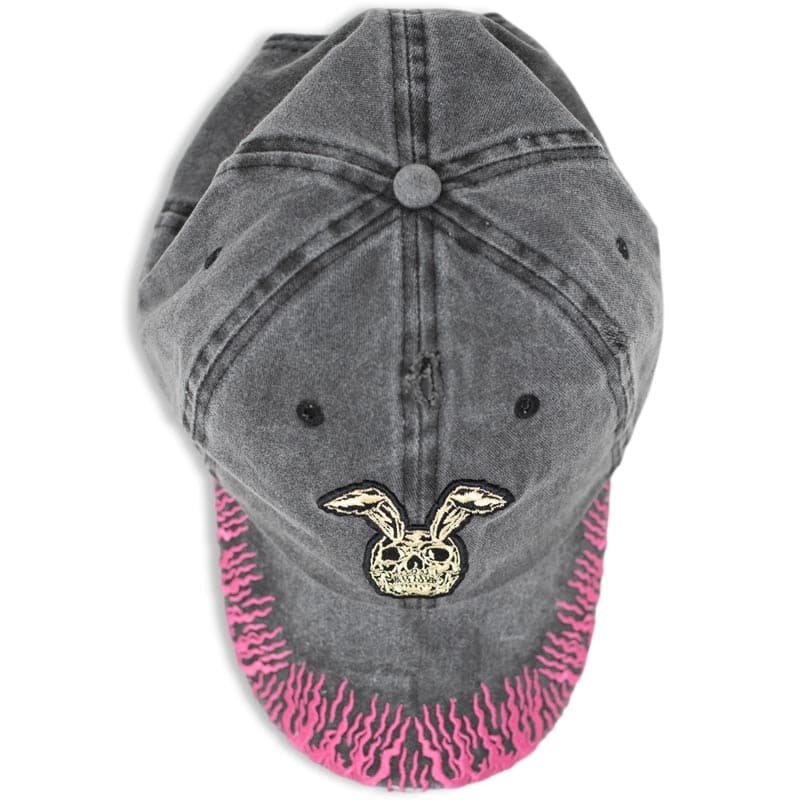 Elevate your style with the Rabbit Skull Vintage Hat, a bold blend of fierce and fashionable. This cap boasts a worn-in look that delivers a fresh attitude, perfect for those who love a touch of rebellion. With its distressed black fabric contrasted by vibrant pink flames, it's a statement piece that promises to turn heads.